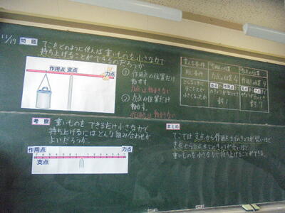 重いものでも小さな力で持ち上げることができるには、どうすればいいのかをみんなで考えました。