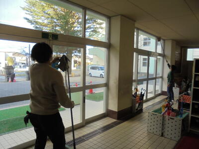 PTAの方に校舎の窓を中心に掃除をしていただきました。