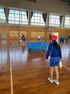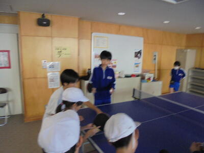 卓球クラブでは、6年生がやさしく教えていました。