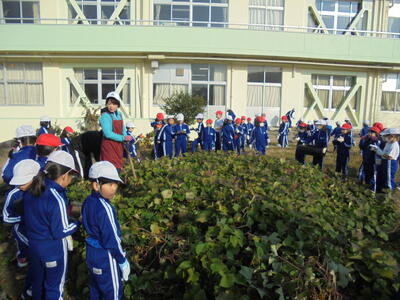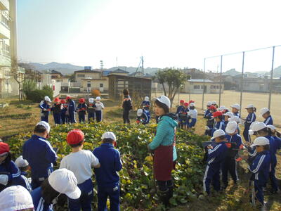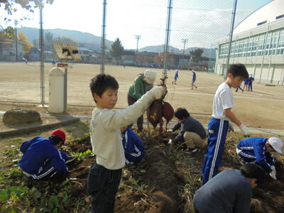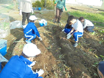 2年生とゆうあい学級がサツマイモの収穫をしています。