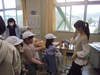 甘くておいしいみかんに、全校生も大喜びです。
