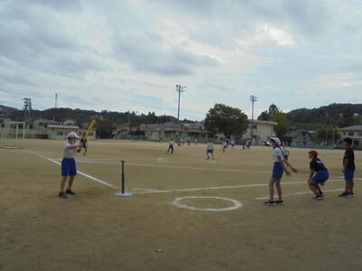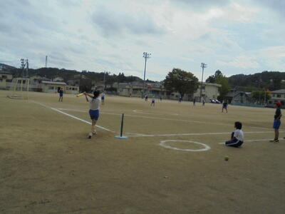 野球のようですが、ティーに乗せたボールをバットで打つゲームです。