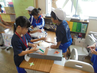 1年生を招待して、2年生のお店が開店です。