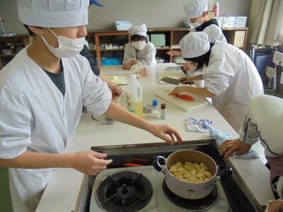 じょがいもをゆでる実習も兼ねて、ポテトハンバーグも作っています。