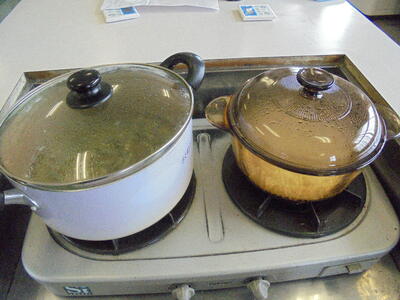 すぎのめ3組がご飯とみそ汁づくりをしています。