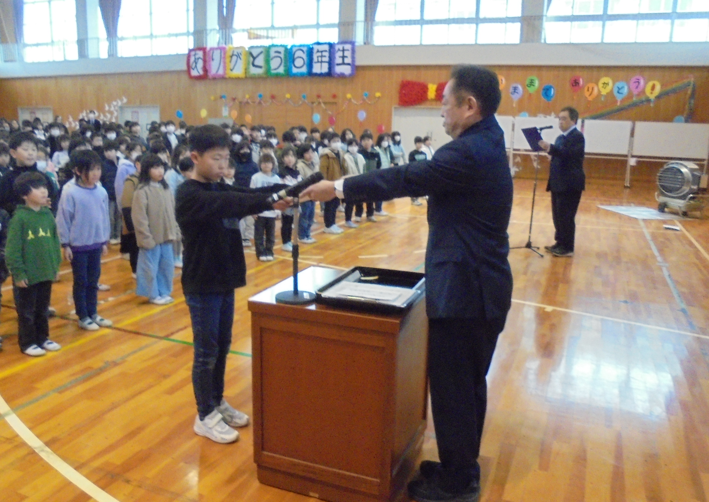 1~5年生が体育館で令和6年度の修了式を実施しました。