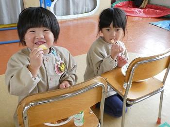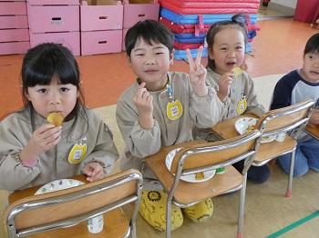 水曜日にはお誕生日会。今回のサイエンスショーは遠心力で固まる水とニュートンのリンゴ。楽しいゲームの後は、みんなで収穫したお芋のサツマイモチップス!美味しくて何度もおかわり~♡