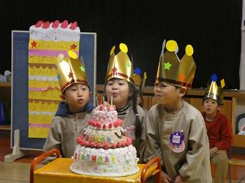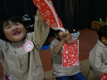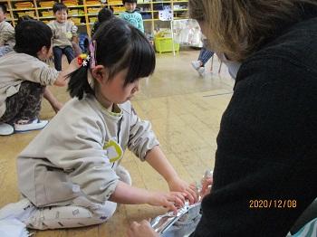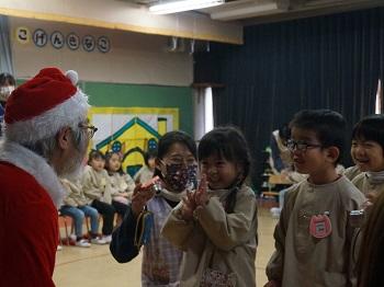 今週、火曜日にはお楽しみ誕生日会を行いました。そしたら、びっくり。サンタクロースがフィンランドからやってきたのです!子どもたちへのプレゼントをいただいた後、子どもたちの質問に上手な日本語で答えてくださいました。また、白い本物のひげも触らせていただき、子どもたちは大喜びでした。でも、「もうサンタさん来ちゃったから、おうちには来てくれないかな?」と、心配している子も…。いい子にしていれば、サンタさん、ちゃんと来てくれますよね!?皆さん!