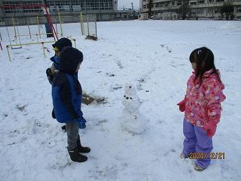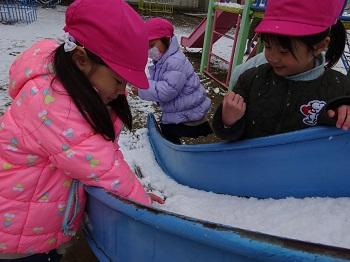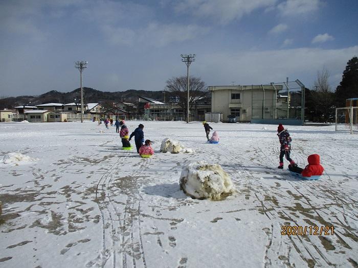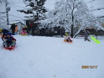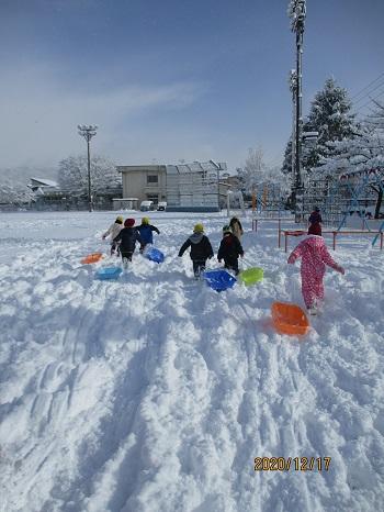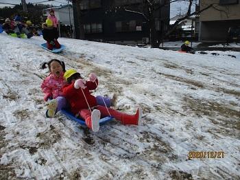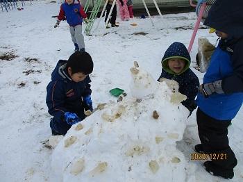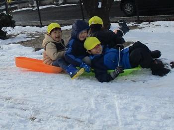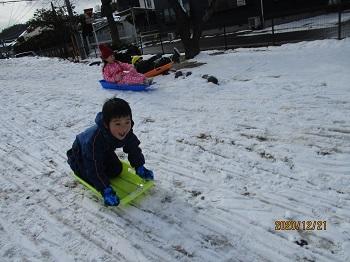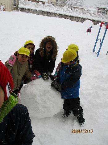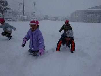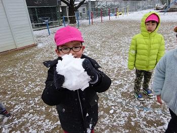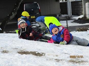 また、サンタさんは白い天使たちも一緒に連れてきてくれました。子どもたちはたっぷりの雪に大はしゃぎ!いっぱい歓声を上げながら遊びました。