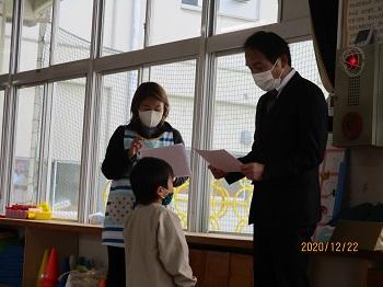 今週はコロナ感染拡大のため急遽、2日間だけで終業式を迎えました(以下の写真では、楽しみにしてくださっている方には大変申し訳ありませんが、きりん組の子どもたちのみになってしまいました。)子どもたちは相変わらず元気で、きりん組もりす組も体調を壊して欠席したお子さんは0でした。このまま、冬休みも無事健康に過ごし、3学期には全員の元気な姿を見られることを願うばかりです。