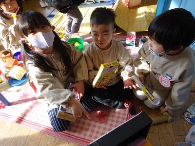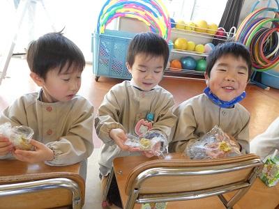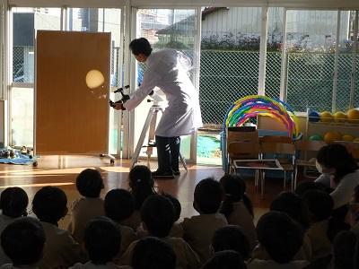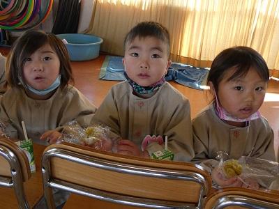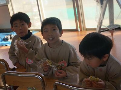 今週、月曜日はお誕生会でした。この日のサイエンスショーは天体望遠鏡で太陽観察です。その後の大根抜きでは、R君大根がなかなか抜けず最後は10人がかり。そしてお楽しみのおやつは、秋に収穫したサツマイモの巾着です。美味しくて何度もお代わりしました。