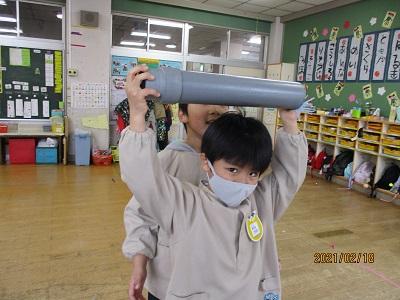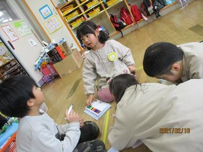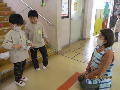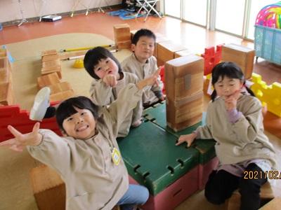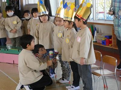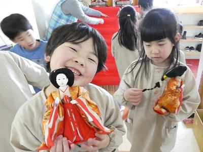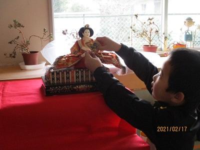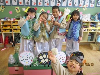 2021年2月19日 18時00分 今週、生活発表会での達成感が子どもたちの心に残り、他の役をやってみるという遊びが起こりました。そして、次の「ひな祭り」へと準備が始動しました。