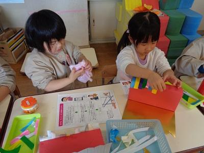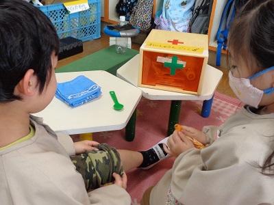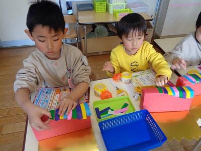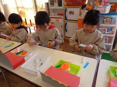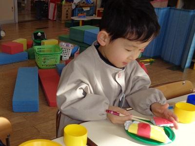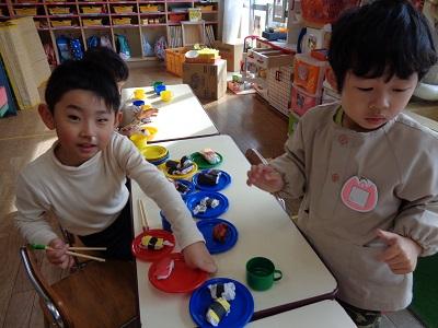 今週、生活発表会での達成感が子どもたちの心に残り、他の役をやってみるという遊びが起こりました。そして、次の「ひな祭り」へと準備が始動しました。