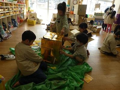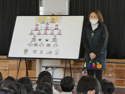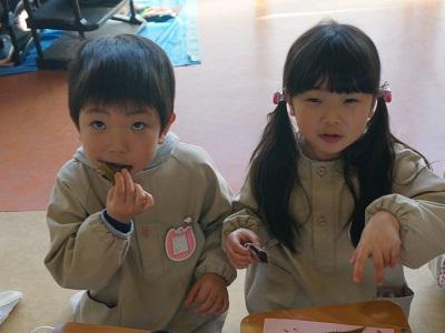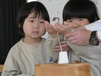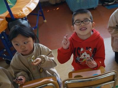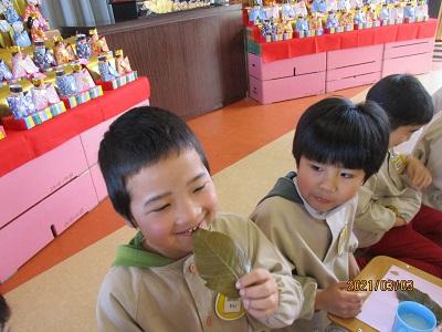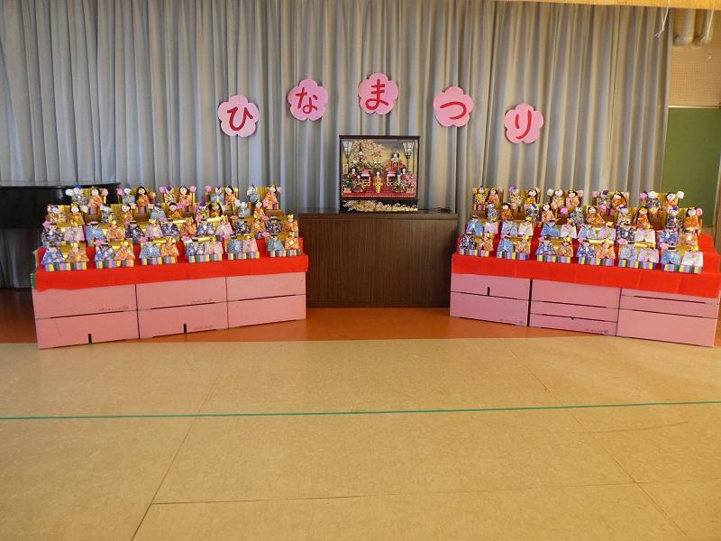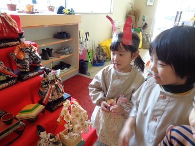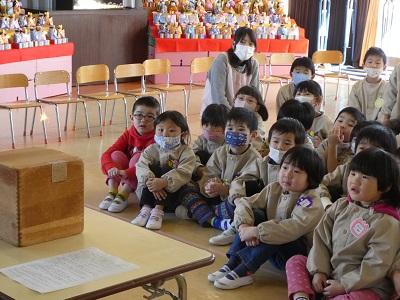 水曜日は、ひな祭り誕生会でした。登園すると「お祭り、どこでやってるの?」というつぶやきが..。「ひな祭りはお店は出ないのですよ。」