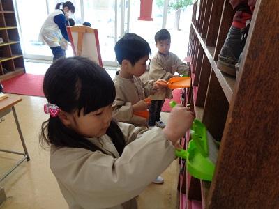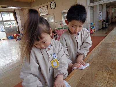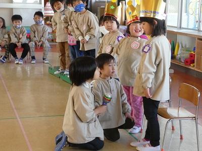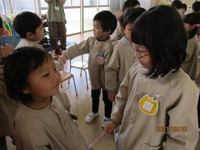 2021年3月5日 10時00分 今週、あっというまの3月。当番活動や誕生会の係をきりん組からりす組へと引き継ぎました。