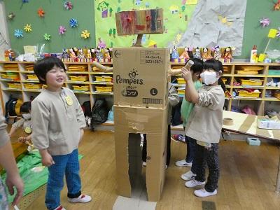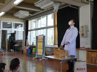 この日は年長さんにとって最後のサイエンスショー。テーマは「温められた空気の流れ」です。宙を舞う炎や天井に上るビニル袋、手のひらで回る風車。そして、最後は超巨大ソーラーバルーン!と思ったのですが、風があったため延期です。来週また楽しみができましたね。