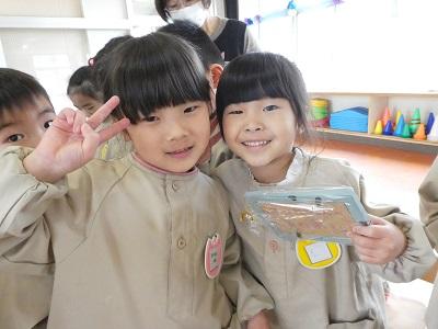 また、金曜日にはお別れ会を行いました。クイズやプレゼント渡し等仲良く楽しくできました。1年間だけだったけど、やっぱり年長と年少のバディの絆は深かったんだなと改めて思いました。