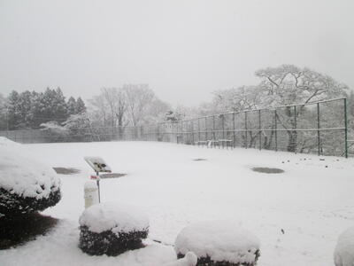 冬といえば、雪。今朝はあたり一面銀世界となりました。技能主査さんが雪をはいてくださった歩道を通って、子どもたちは登校しました。