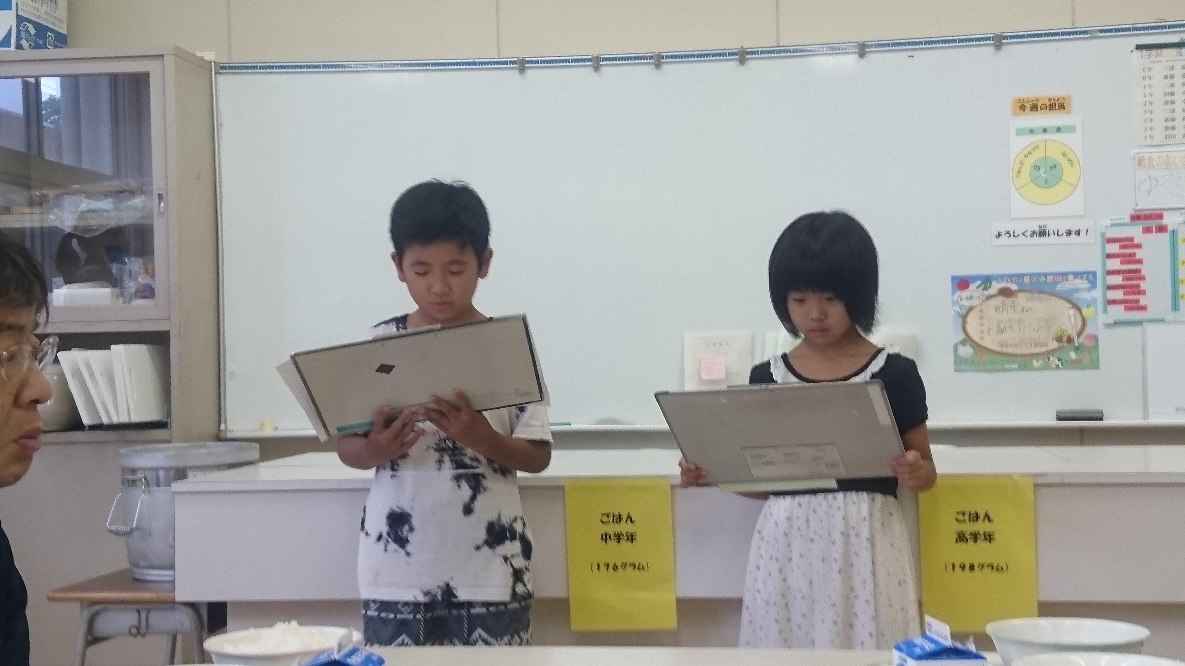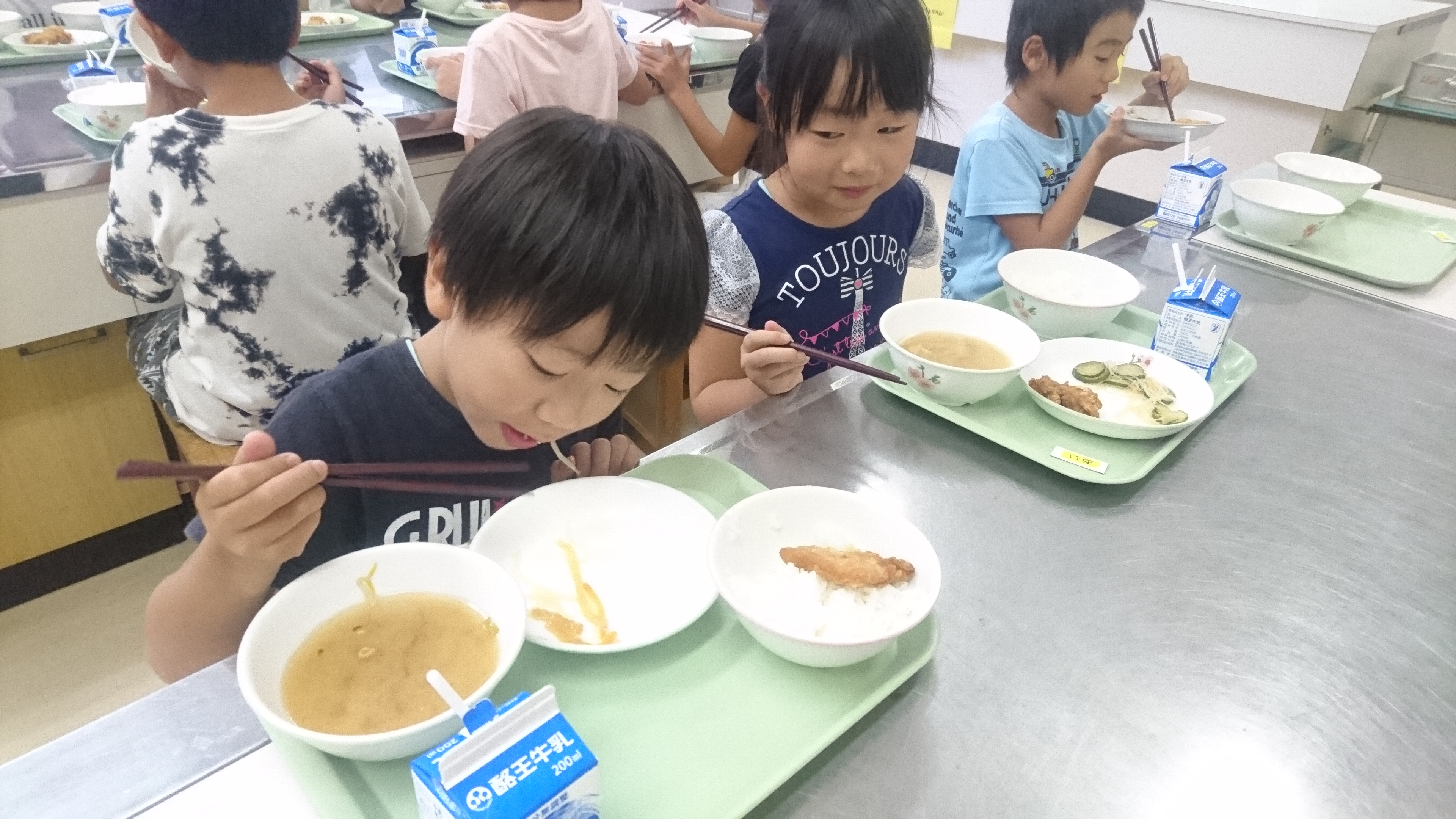 野菜が苦手で毎回残していた1年生の児童が初めて残さずに野菜を食べました。しかも他もすべて完食しました。パチパチ