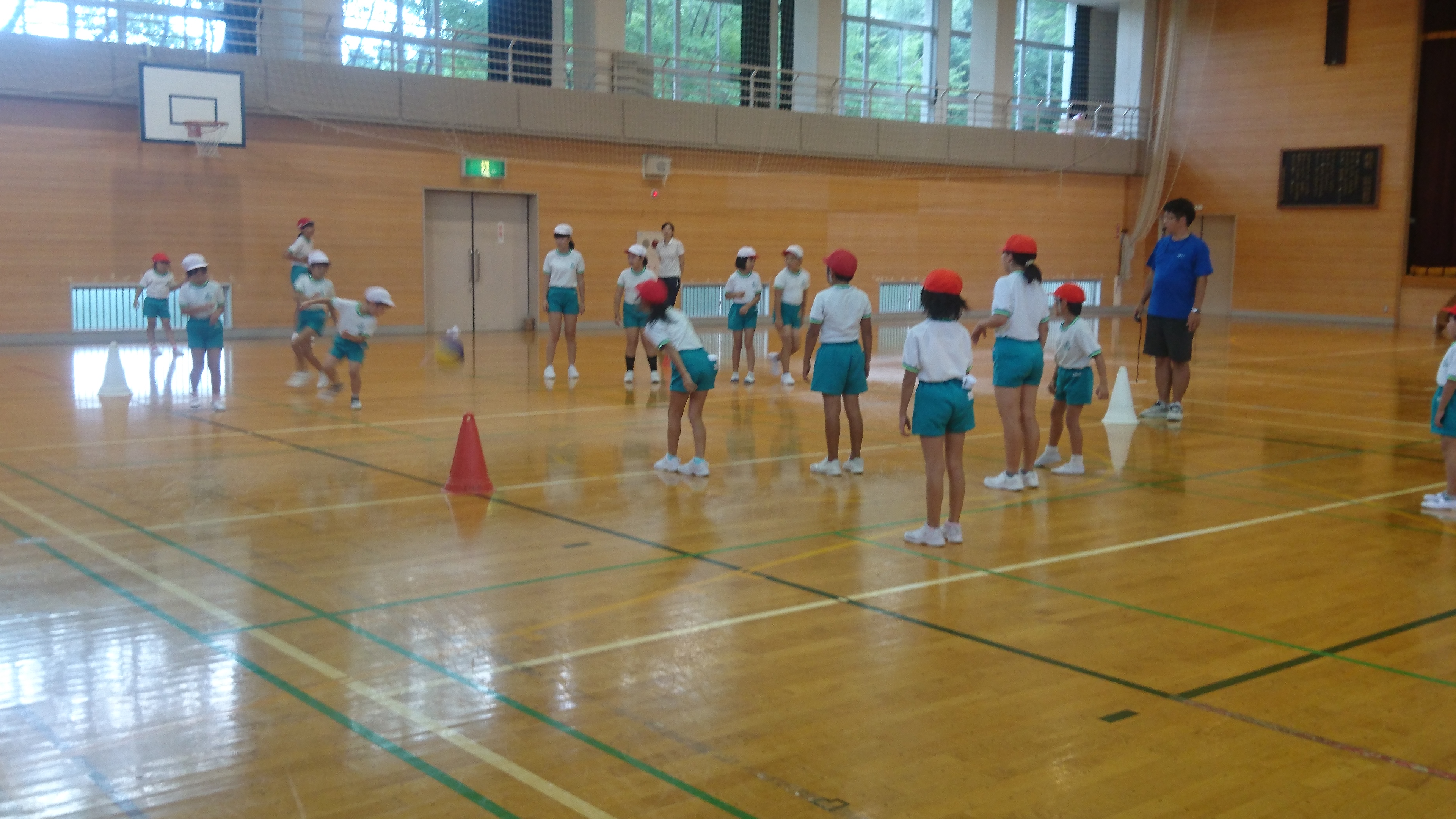 2018年8月30日 14時28分お昼休みに体育館で5・6年生の企画によるドッジボールを全校生で行いました。