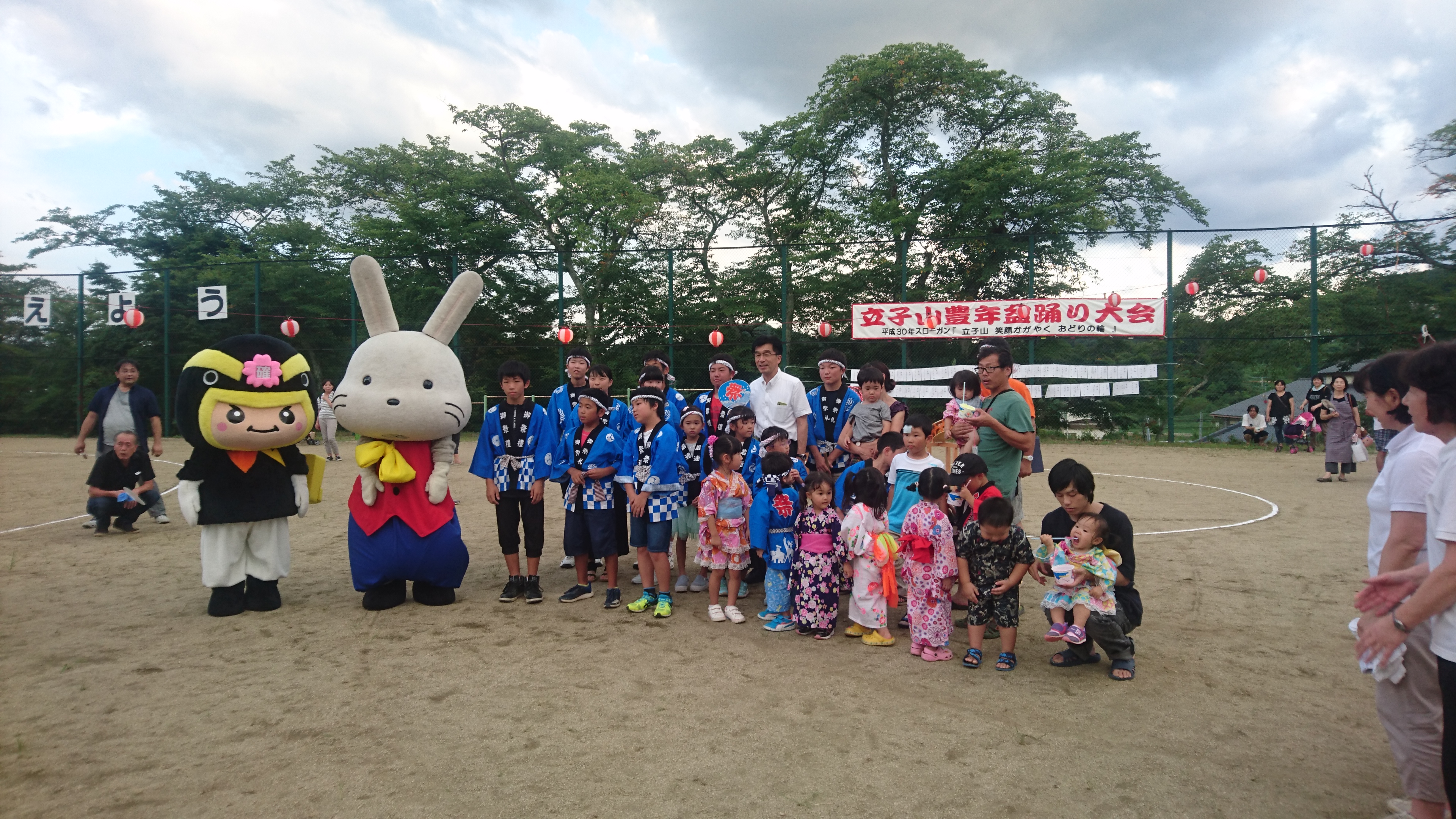 今年のスローガンは6年生の斎藤さんが考えた「立子山 笑顔かがやく おどりの輪」です。