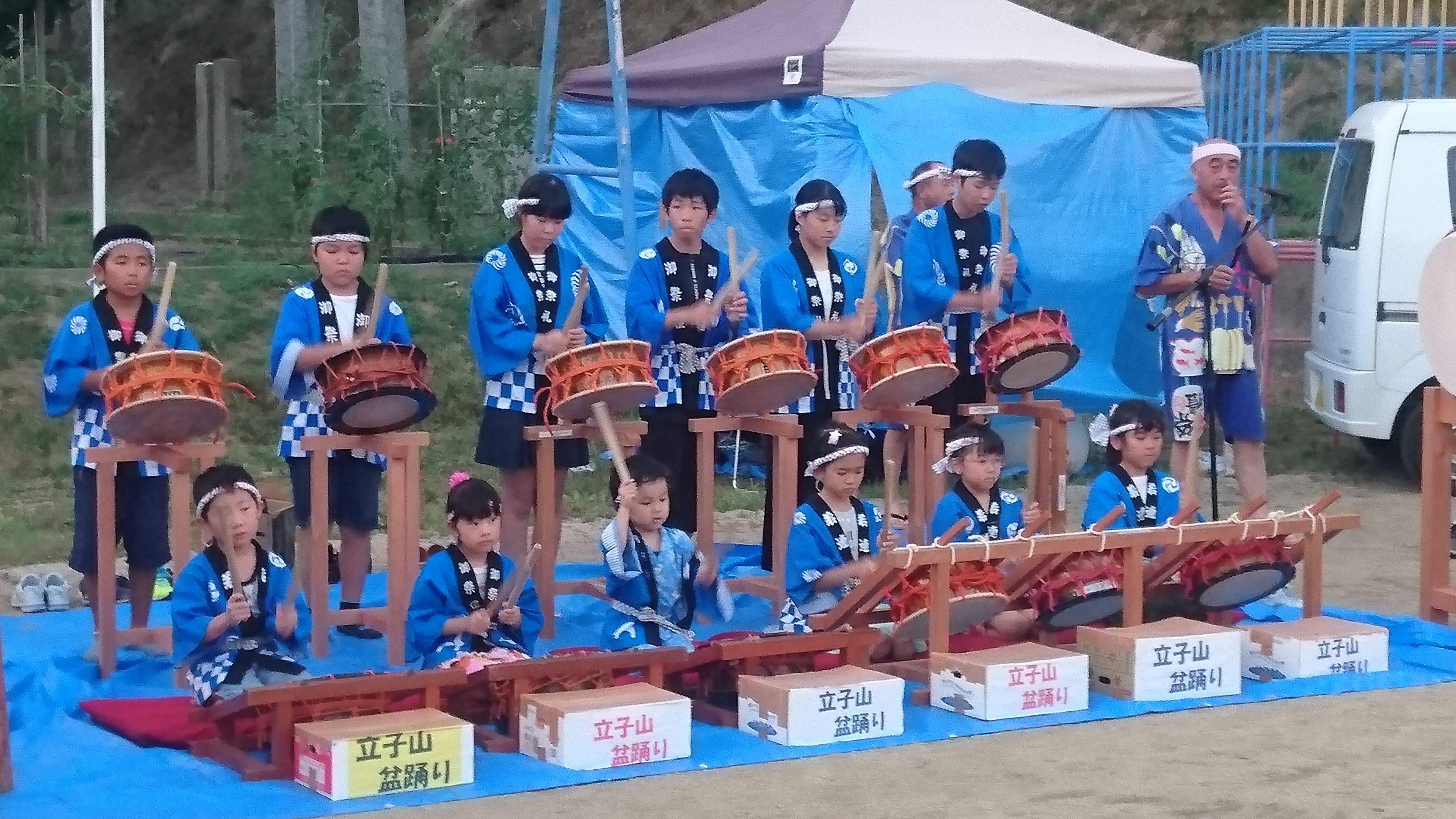 小中学生らによる立子山豊年盆踊り太鼓が披露されました。練習の成果を発揮し、見事な演奏でした。