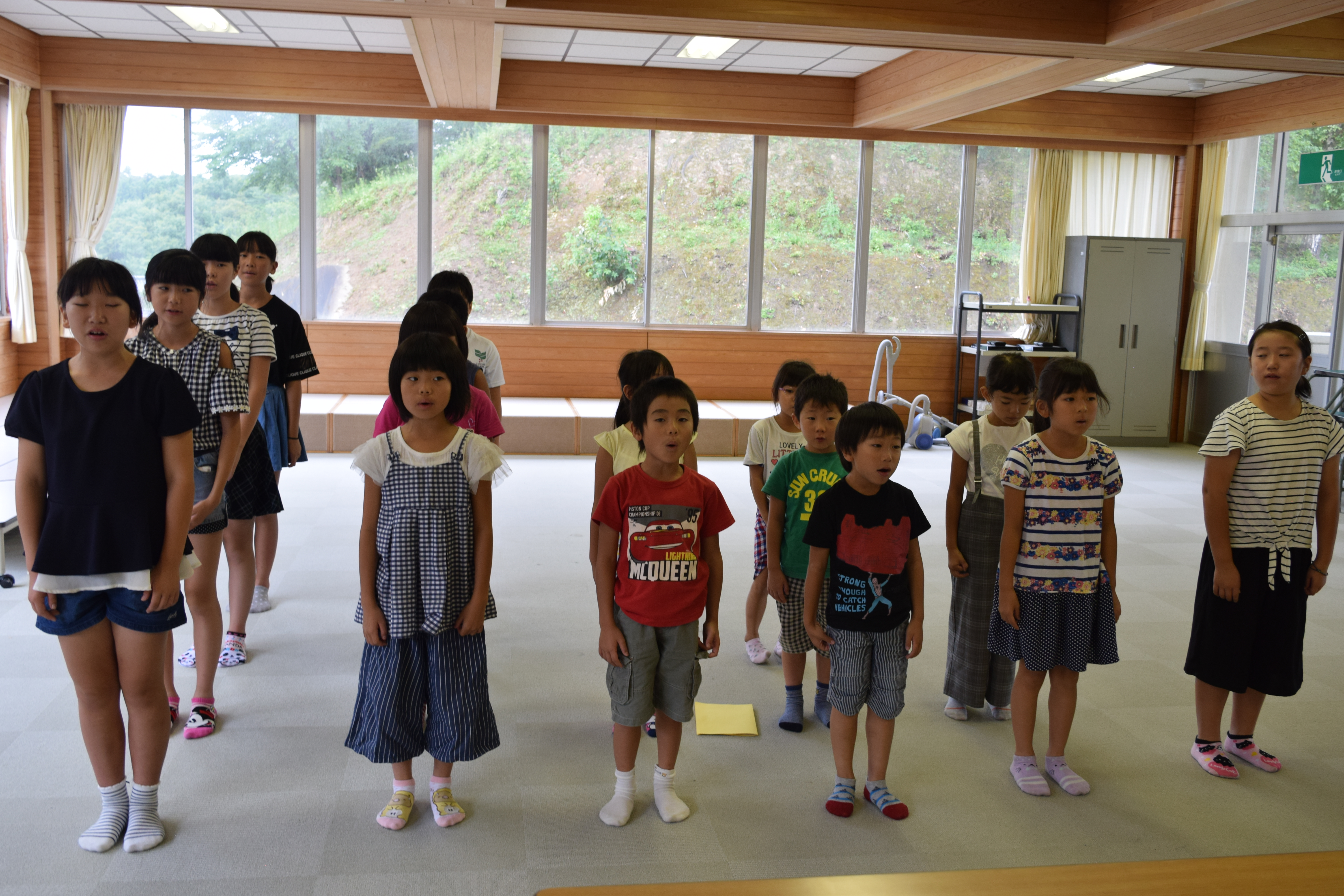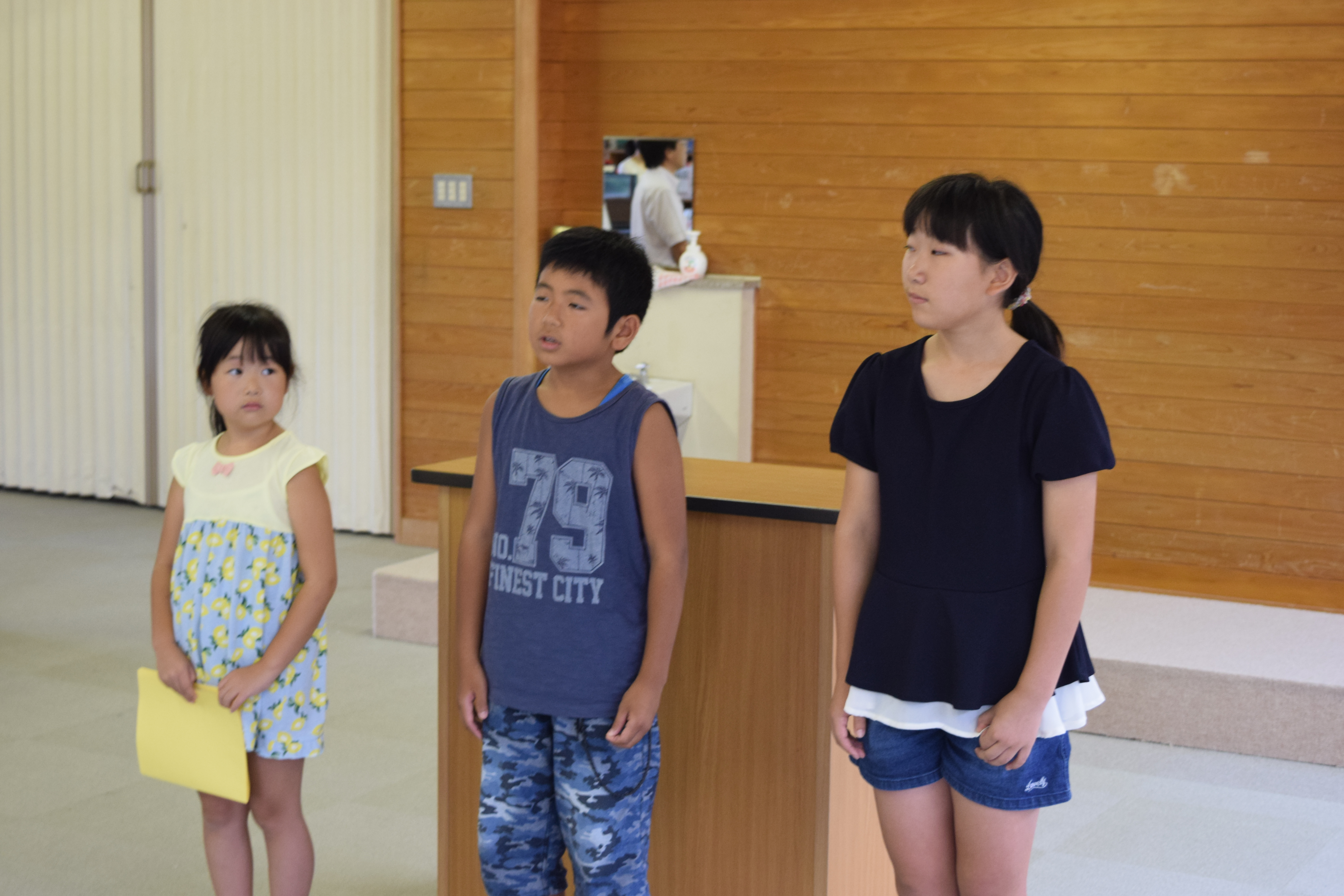 2018年8月27日 09時49分全校生16名全員がそろい、2学期始業式が実施されました。式の中で校長先生より、大きな行事が多い2学期、何事にも前向きにチャレンジし、頑張っていってほしいとのお話がありました。その後、各学年の代表児童が、「夏休み楽しかったこと」「2学期頑張ること」についての発表をしました。
