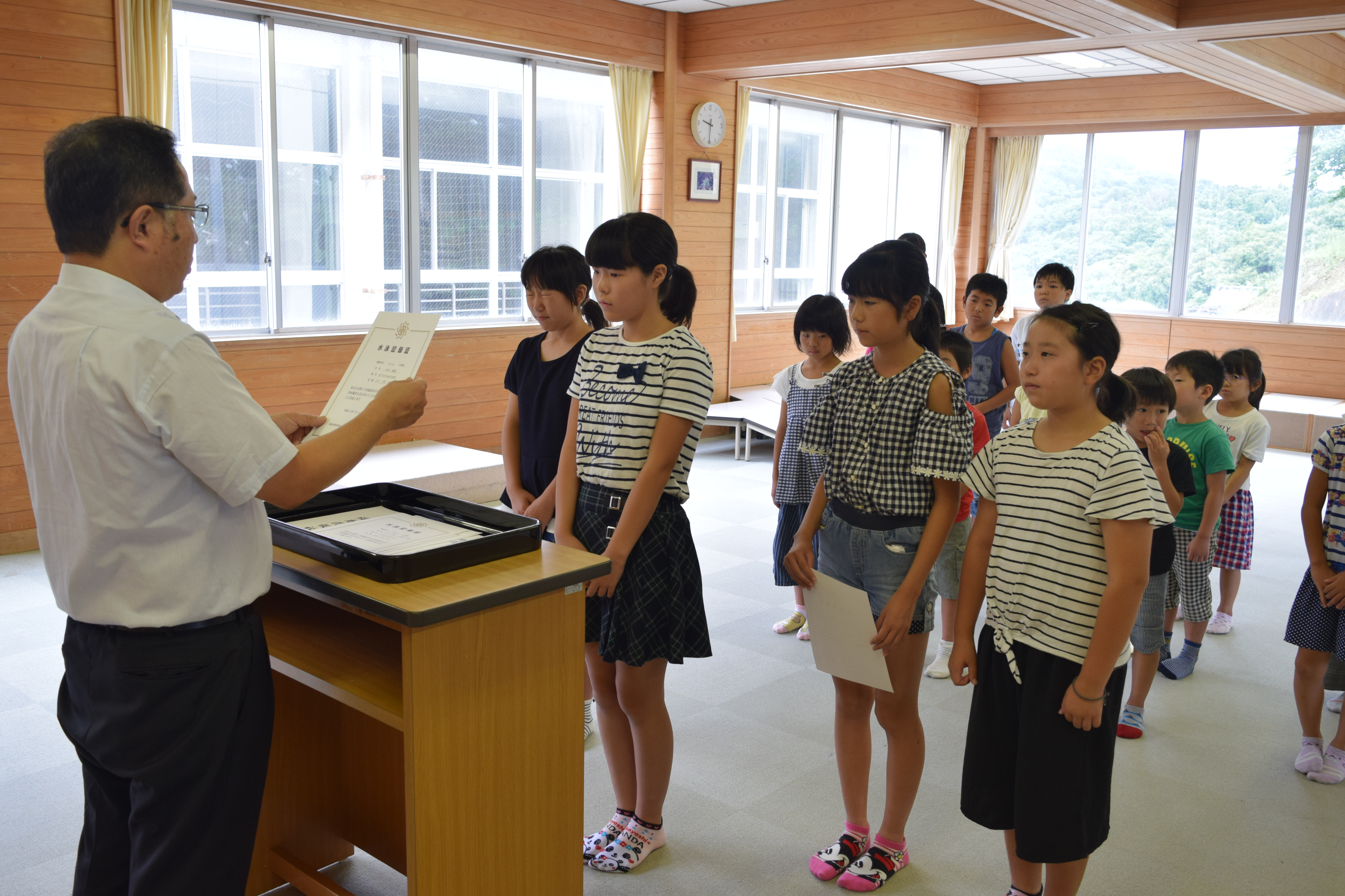 また、始業式終了後にたなばた展と水泳大会の表彰が行われました。2学期も、一人ひとりが自分の目標に向かって活動し、実り多い学期にしてほしいと思います。
