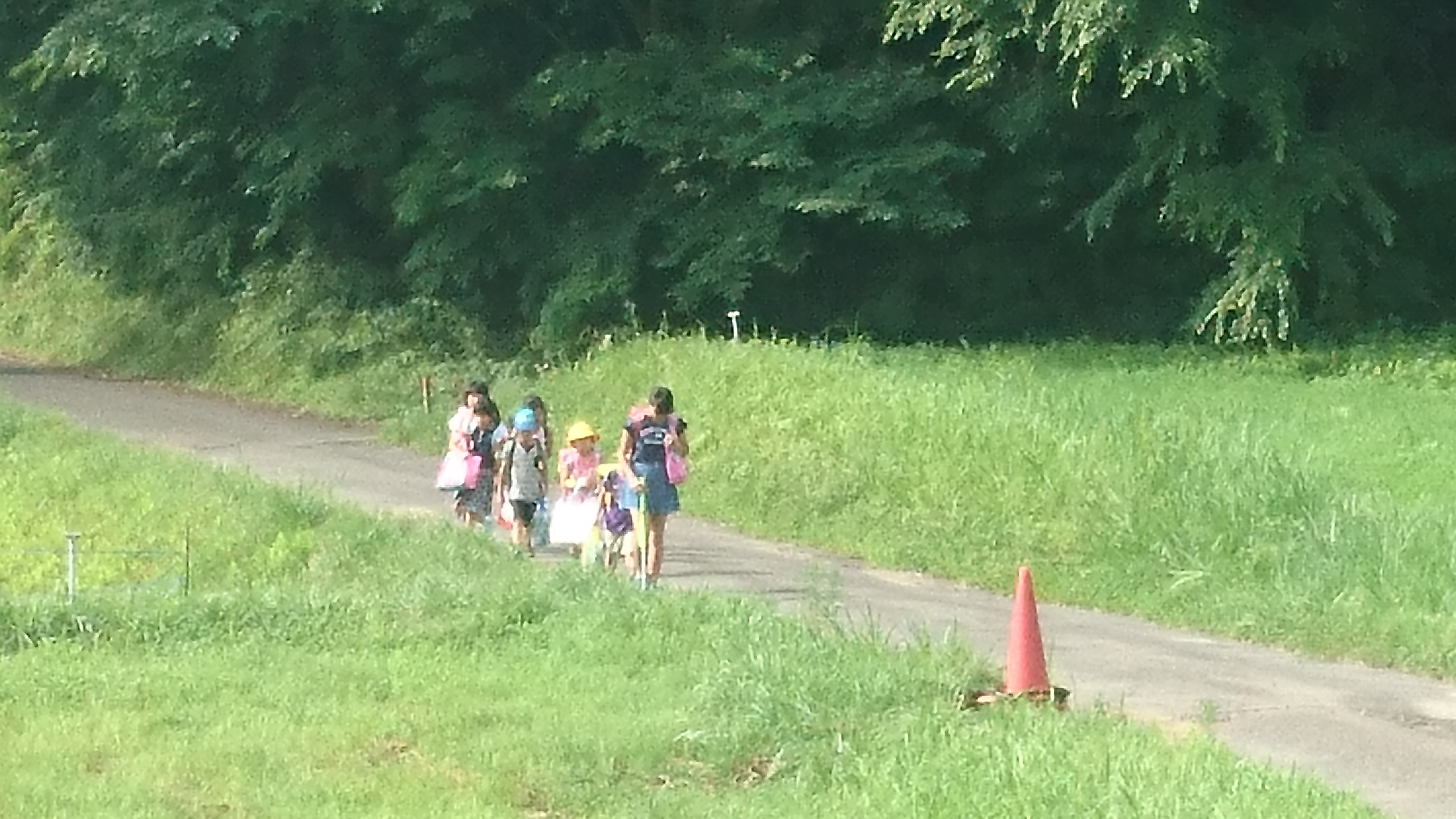 緑のおいしい空気を吸いながら、暑さに負けず登校です。豊な自然が立子山の誇りです。