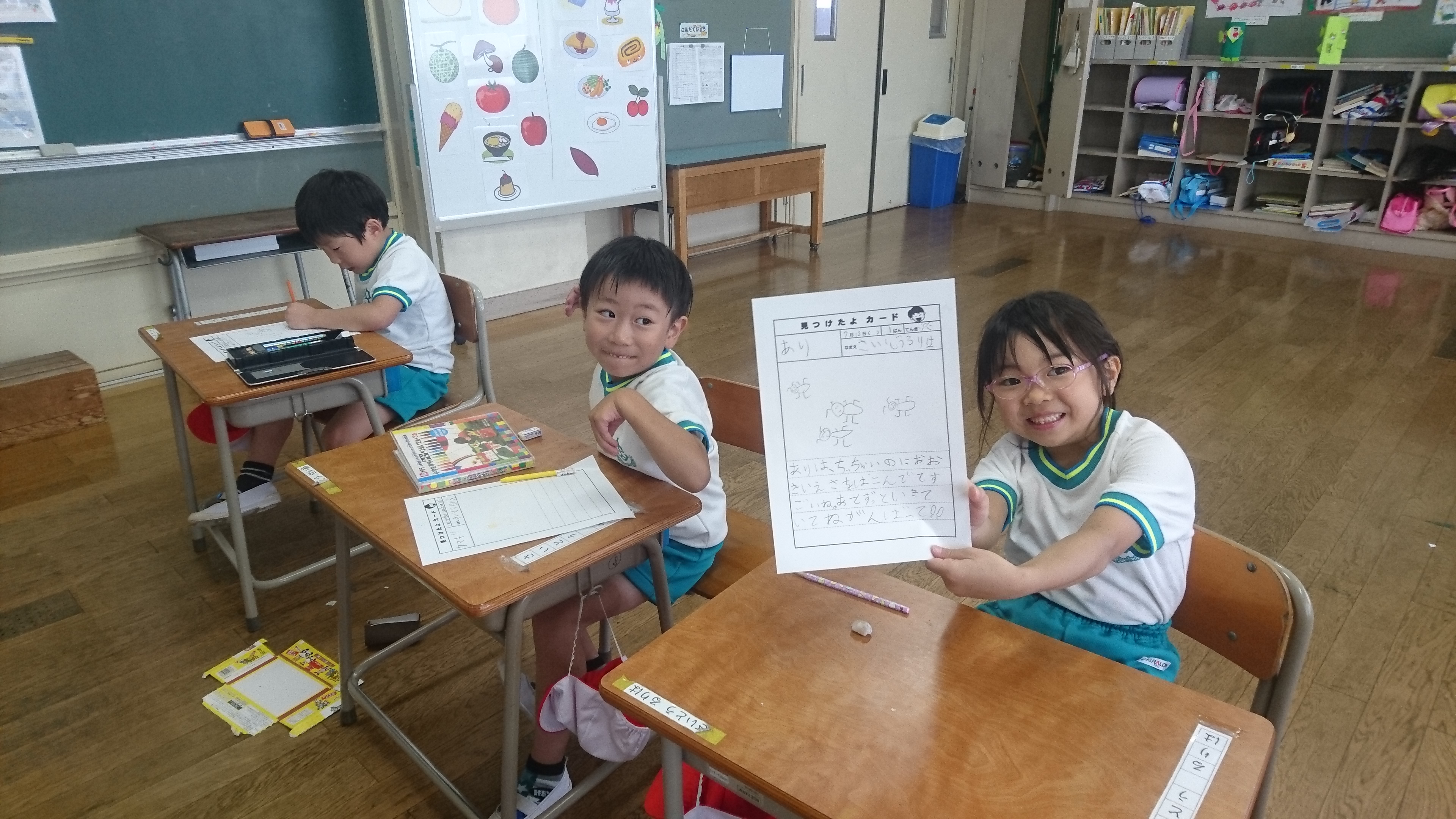 お友だちがカマキリを持ってきてくれました。また、教室がにぎやかになりました。
