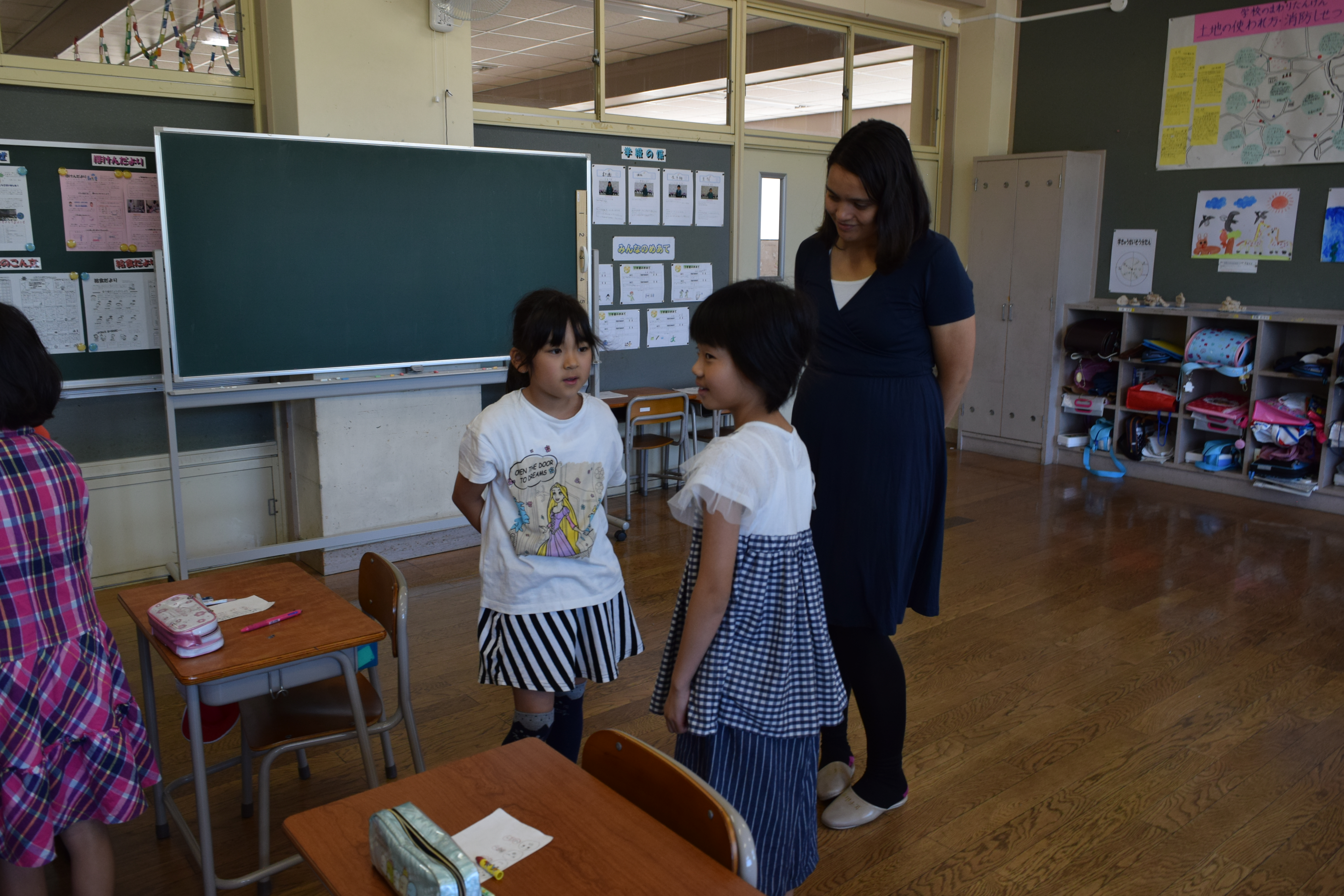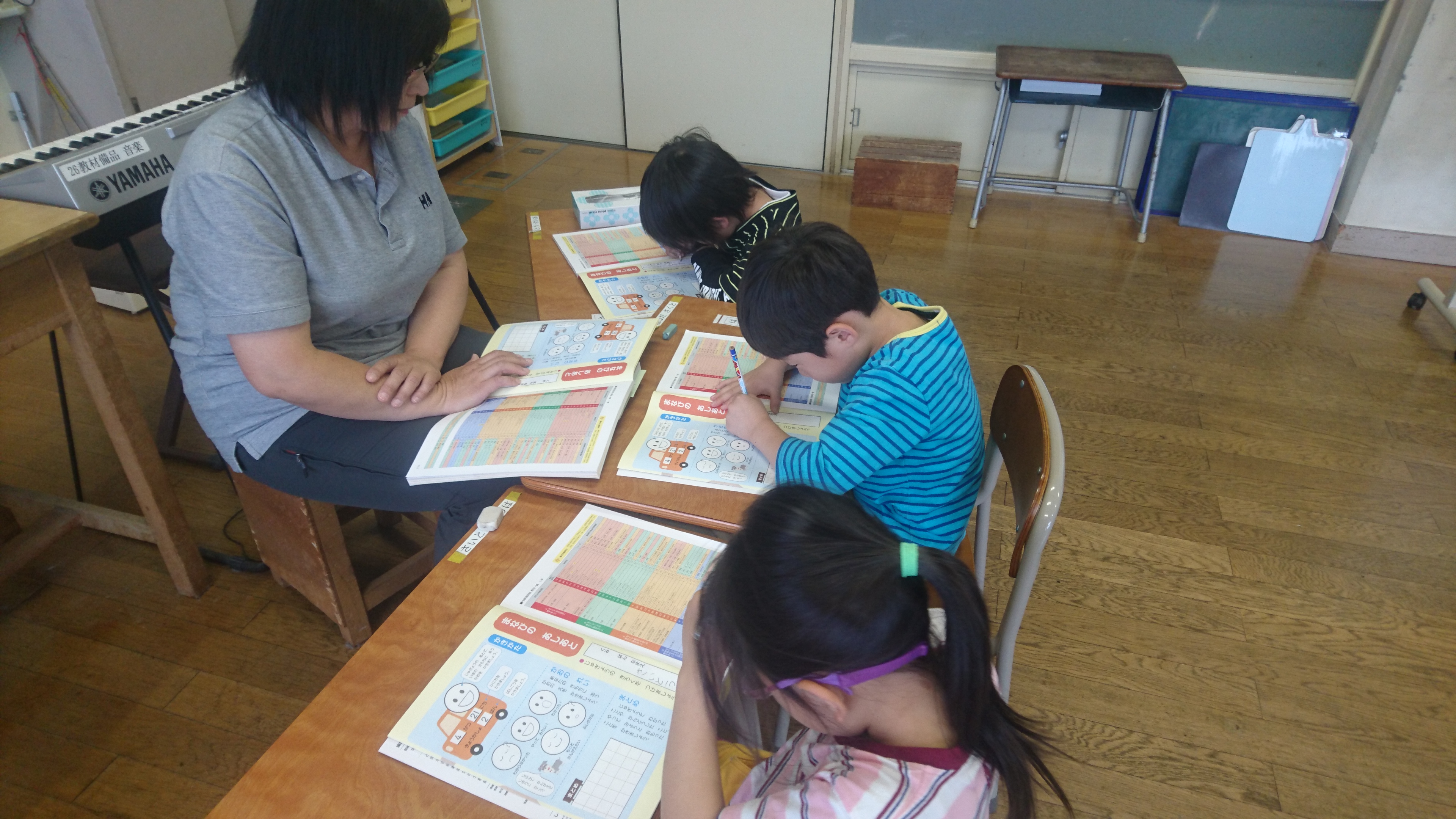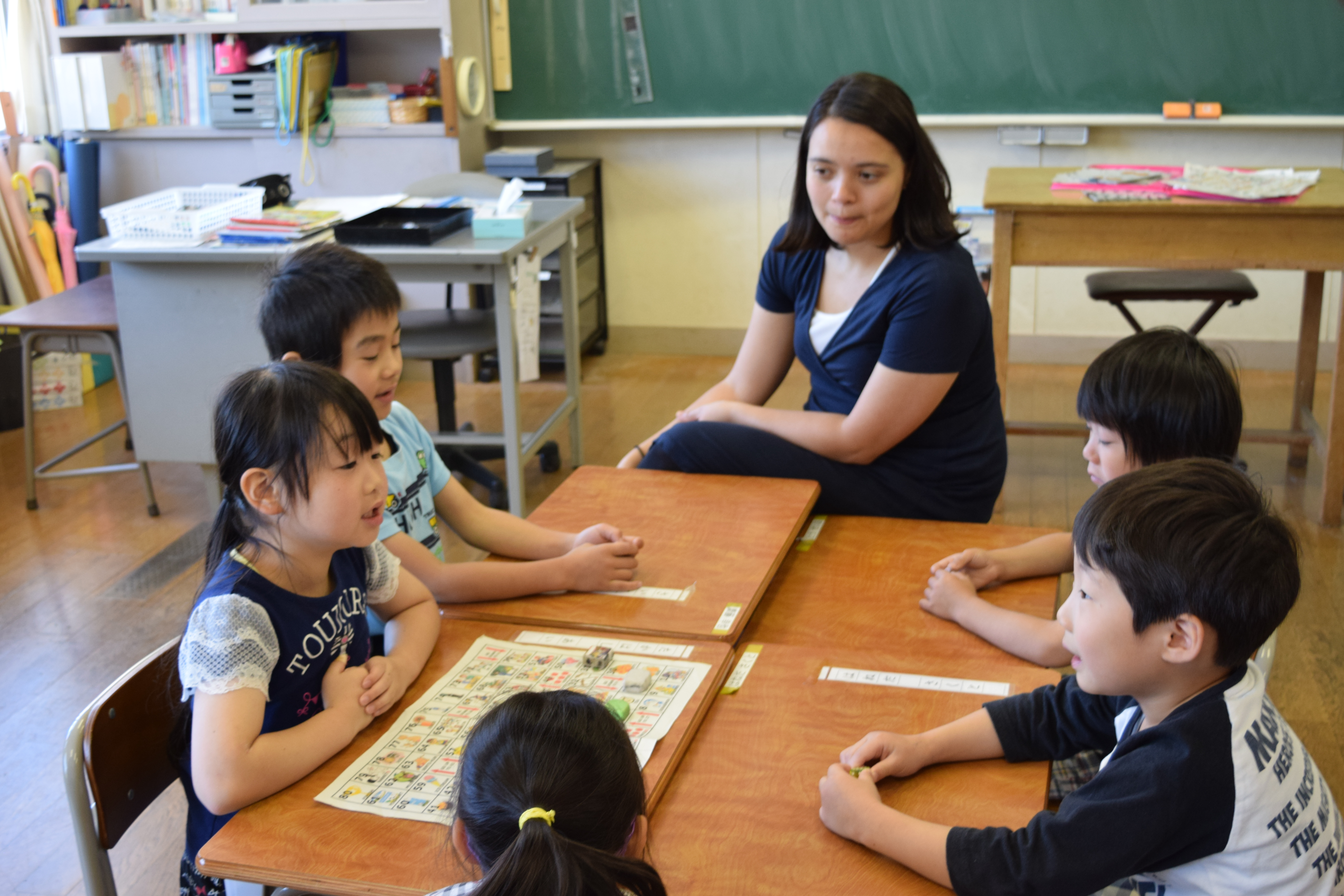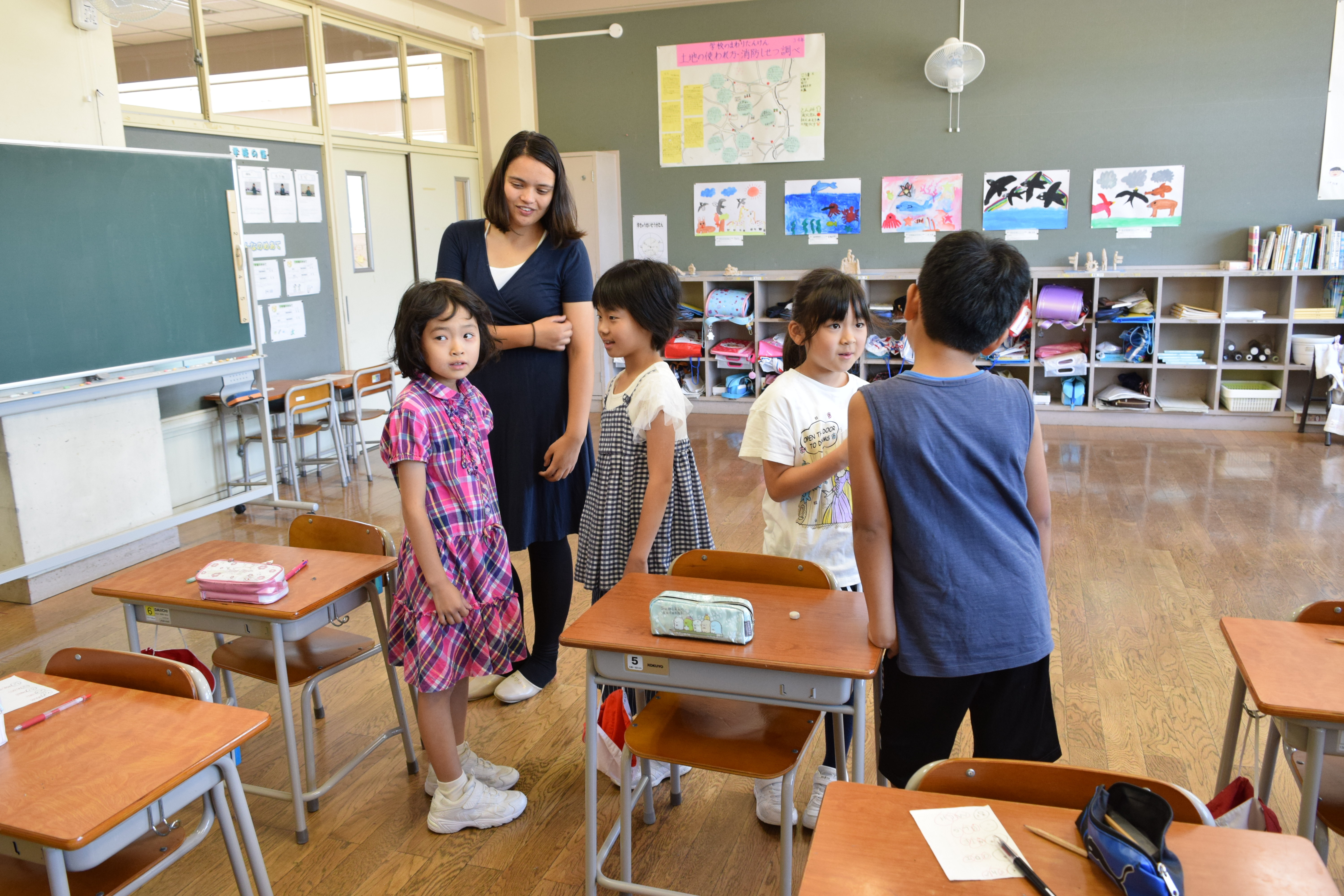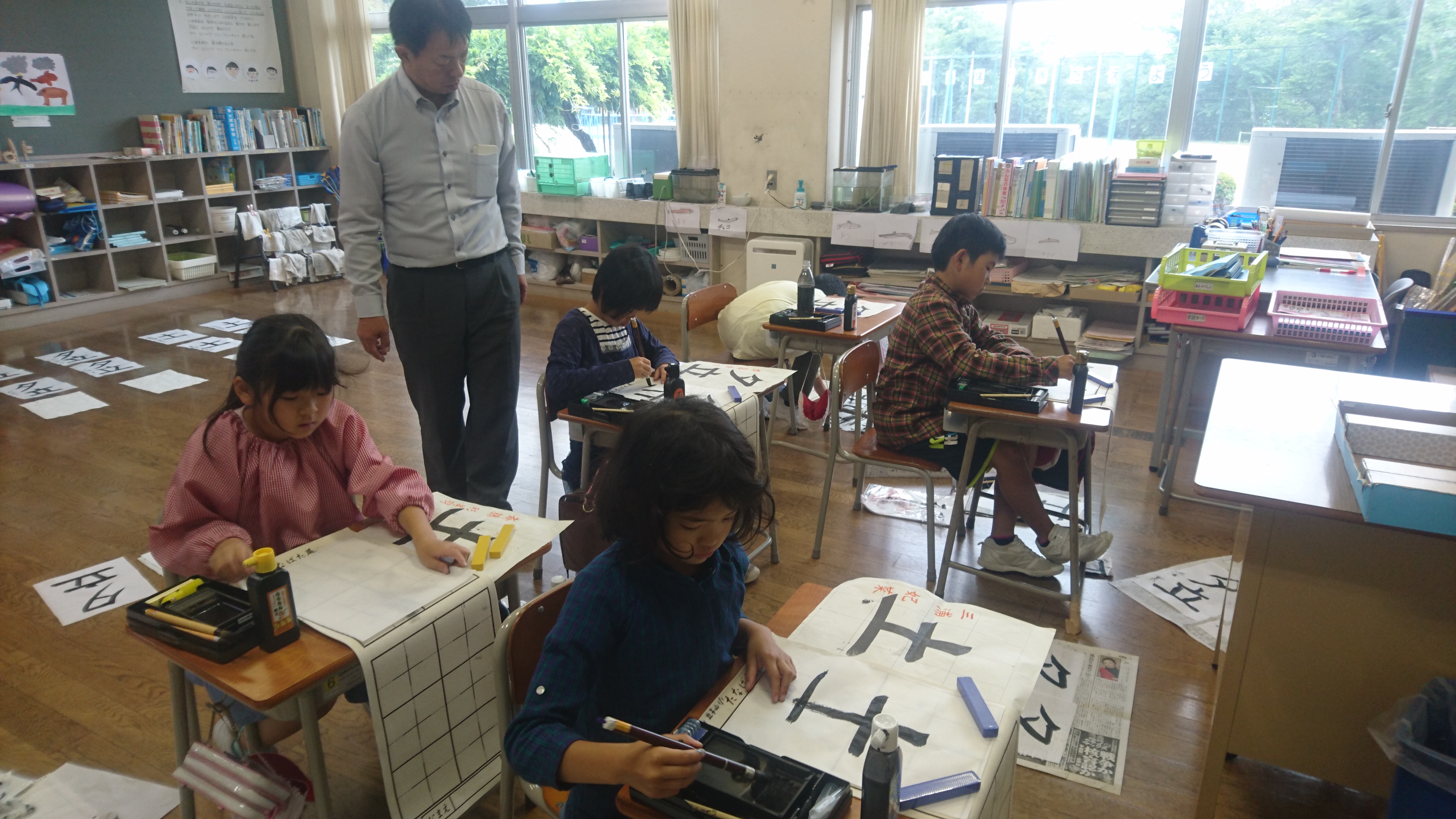 2018年6月18日 16時22分午前中に引き続き、午後は昼休みの全校遊びでボールを使った「だるまさんが転んだ」を教えていただきました。初めてのルールでしたが、みんなすぐに覚え、楽しく活動していました。5校時は、5・6年生の高跳びの授業を一緒に行いました。助走のリズムや足の上げ方などに注意して活動していました。放課後は、3から6年生が、ゲームを通して体づくりに取り組みました。今日1日、新しいゲームや運動のポイントについて教えていただき、全員が楽しみながら、心地よい汗を流していました。