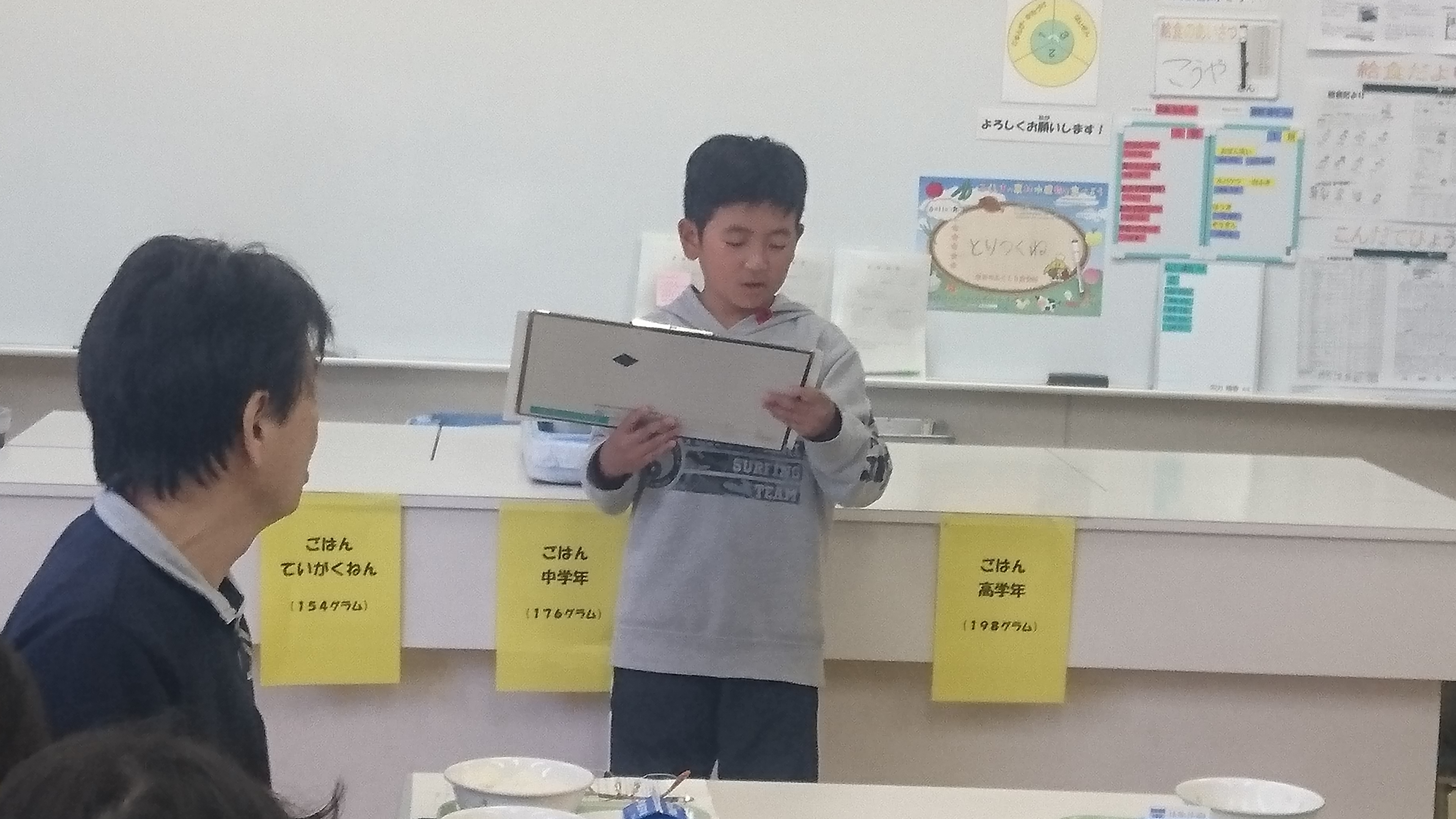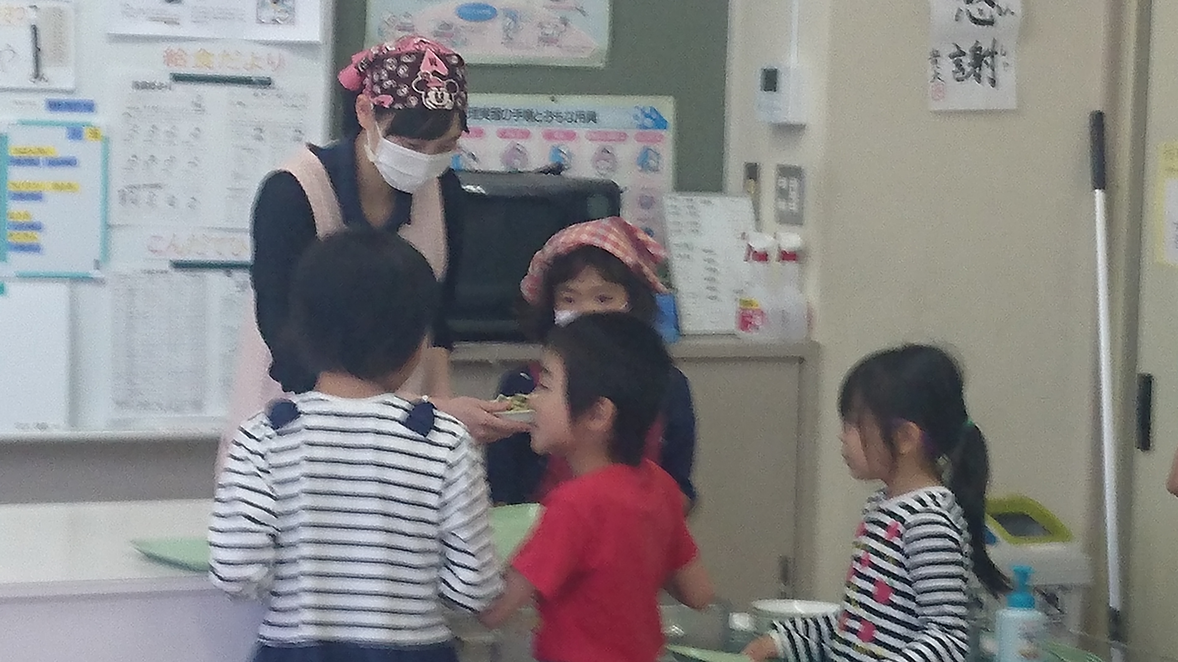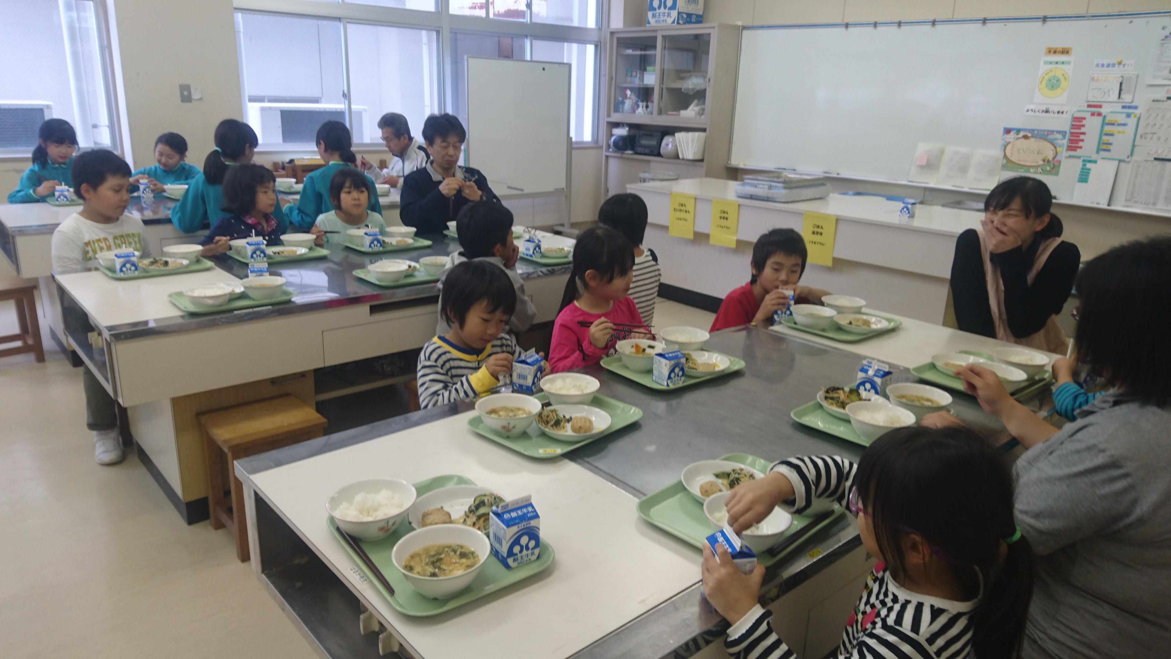 宿泊学習があったため、全学年そろっての給食は10日ぶりです。活気があります。