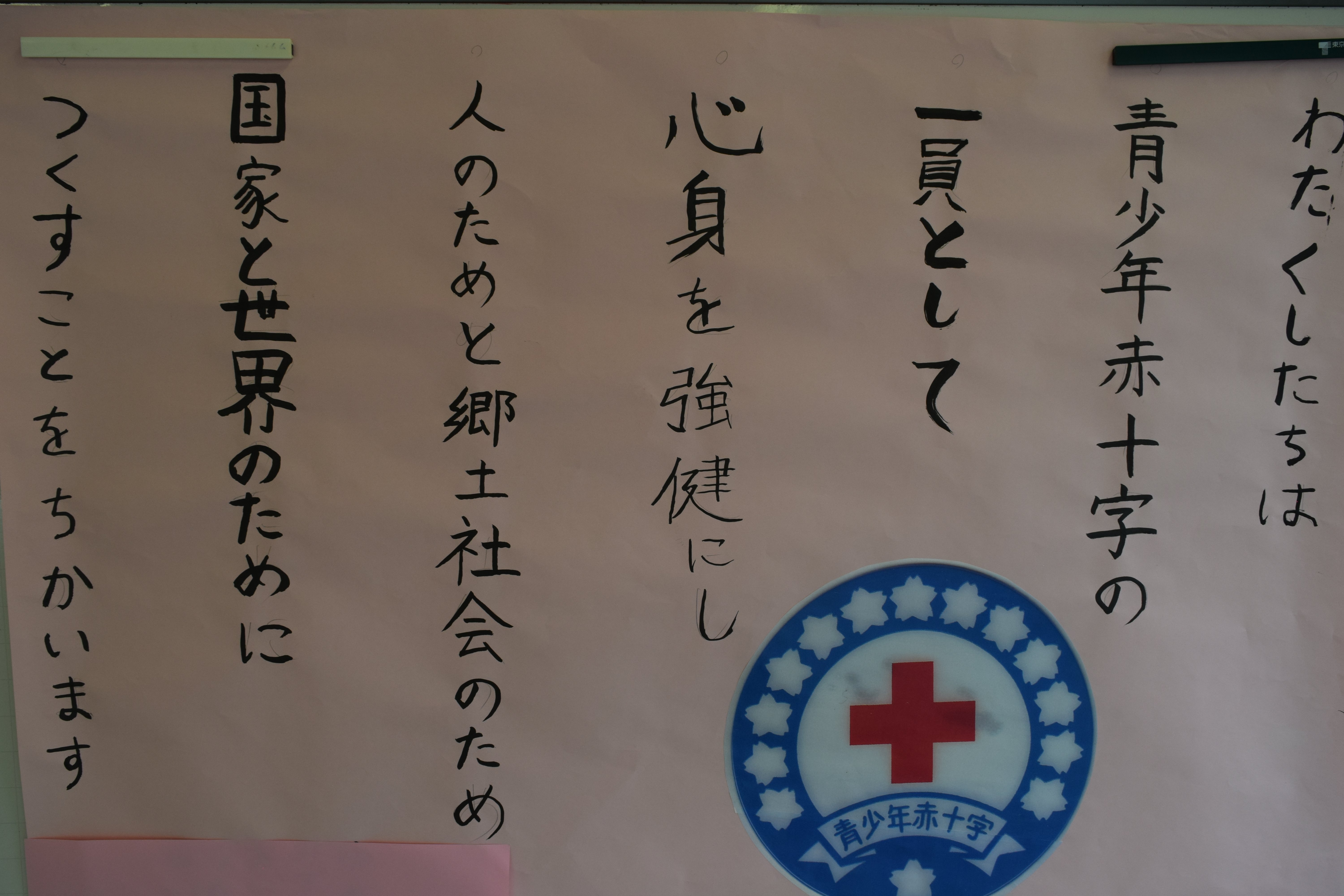 表彰終了後には、JRCの登録式も行われました。『気づき、考え、行動していくこと』を全校生で誓いました。