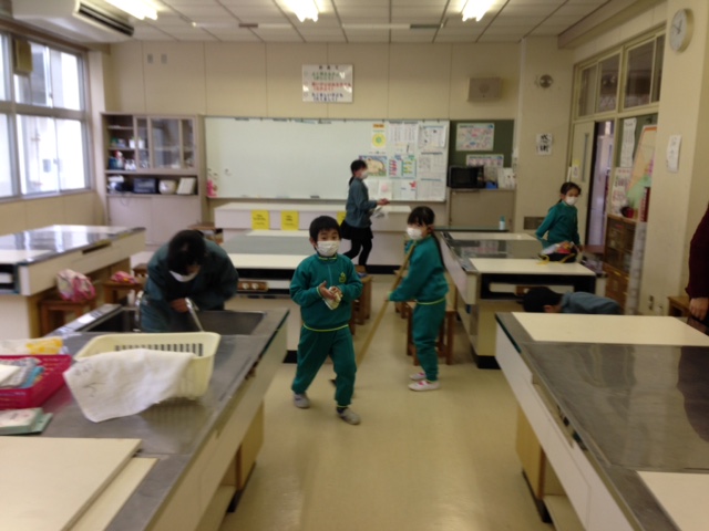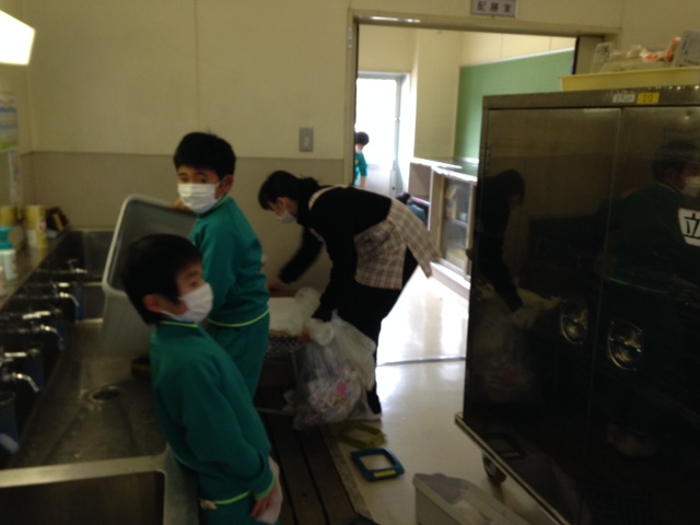 今年度最後の給食でした。6年生と食べるカレーはとてもおいしかったようで、給食の残りが少なかったようです。食べた後は、全校児童で分担して片付け。お盆洗いはいつものことですが、床の汚れもこすって落としました。いつもより丁寧に配膳室の掃き掃除も。立子山小学校のよいところは、みんなでやること。文句を言ったり、サボったりする人は誰もいません。逆に、自分から進んで仕事を見つけたり、手伝ってくれたりします。本当に素敵な子供たちです。