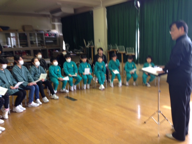 子供のころの懐かしい話を盛り込みながら児童に歌のプレゼント。