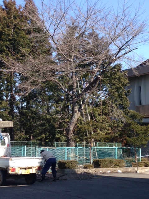 休日を返上して、今日は8時半から地域ボランティア4名と技能主査の5名の皆さんが、敷地内樹木の伐採をしてくださっています。枯れた木や伸び切った木があり、困っていました。地域の皆様には、いつも学校のことや児童のことを気にかけてお手伝いいただいています。感謝の言葉しか見つかりません。 いつもありがとうございます。