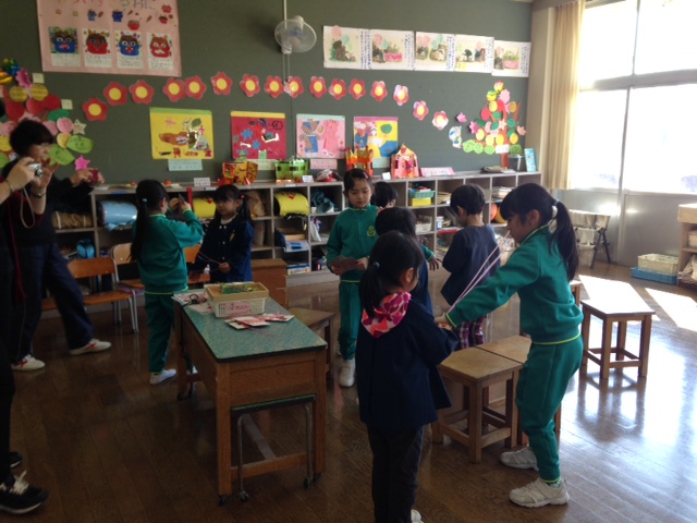 本日、立子山保育園児が、1,2年教室に遊びに来ました。