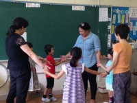 地域のお客様をお迎えをして、保・小・中連接盆踊り太鼓教室が開催されました。東日本大震災後、一度中断しましたが見事、復活して今年は51回を迎えます。