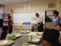 給食の準備を見学した後、所長さんより給食が完成するまでの行程を教えていただいた後、栄養教諭の先生からは「かむことのよさ」についてお話していただきました。