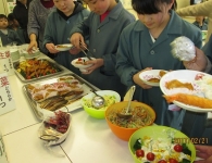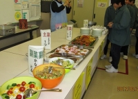 今日は、年に1度のバイキング給食。南部学校給食センターから、2名の栄養士の先生が来校しました。バイキング給食は、通常、6年生が対象です。本校では全校生で給食を食べているので、今回は、全員で豪華でおいしい給食を食べました。