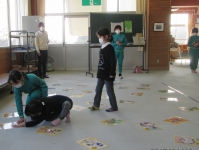 昼休みは、保健給食委員会企画の食育カルタ大会。縦割り班対抗戦で、食に関するカルタを取って遊びながら、食べ物の勉強ができました。