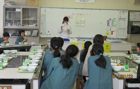 明日から学校給食週間です。そこで、学校では、担任の先生による食に関するお話を今週3回、給食の時間に実施することとしました。第1回の今日は、「和食」のお話。「和食」の材料には手間をかけて作られている食品が多い物です。地域の特産物である「凍み豆腐」もその一つですね。今年度は,大豆の栽培をしながら、枝豆の採取や調理、そして凍み豆腐づくりと調理へと、1年間を通して全校児童で学習することができました。和食や郷土愛を見直す機会にもなりました。