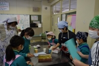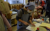 今年度最後の土曜授業日は、児童が作った「凍み豆腐」を使って親子で料理をしました。ヘルスメイトの皆さんを先生に、「凍み豆腐入りつくね」と「キャベツと凍み豆腐の煮浸しを教わりました。みんなで楽しく調理ができたのはもちろん、ヘルスメイトの皆さんが、事前に材料と分量の研究をしてくださったおかげで、とてもおいしい「凍み豆腐」のおかずが完成しました。保護者の感想からも、楽しい時間だったことがうかがえます。