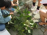 1学期に蒔いた大豆が収穫の時期を迎えました。香りのよい「豆」をくださったお二人の畑の先生をお招きして、明日は「みんなで作って食べる会」です。どんな料理に変身するのでしょう?今日は、枝豆を収穫して下ごしらえ。枝豆は、調理しきれないほどたくさんあるので、明日使う分を残して、家庭に持ち帰りました。おいしく召し上がってください。