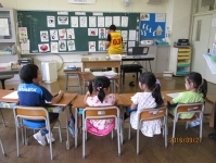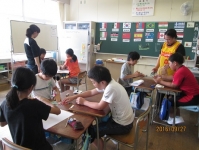 今日は、ルシアニ先生の来校日です。ルシアニ先生の授業では、指示はすべて英語で出されますが、ジェスチャーやイラスト、写真などいつも豊富な資料を準備してきてくださいます。どの学級でも楽しそうな声が響きます。