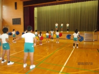 1~4年生で、ひそかに練習をしてきた応援団。市水泳大会に出場する6年生のために、精一杯応援をしました。
