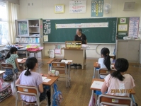 今年度も特別非常勤講師として「専門家を活用した授業」を行っています。今年は、新たに書写、算数、音楽の3教科としました。今日は、3,4年生で「そろばん」の授業。3年生は初めての「そろばん」ですが、そろばんの種類や作り、親指や人差し指の使い方、読み方を習い、最後はたし算とひき算をそろばんで解くことができました。あっというまの1時間でした。