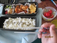 2016年6月27日 13時17分今日は、お弁当づくりの日。児童は、A~Cまでのコースから希望のコースを選んで、お弁当を作ってきました。写真は、Aコース(すべて自分でお弁当をつくる)に取り組んだ児童の作品です。とてもおいしそうです。
