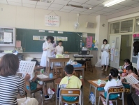 毎日の歯みがき指導は、給食後に養護教諭の指導のもと全校児童で行っています。