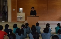 震災経験・教訓の継承授業として、昼休みに全校集会と5校時目に全クラスで道徳の授業を行いました。6年生は当時1年生、1年生は2歳であり、児童の記憶もそれぞれでした。地震により多くの犠牲者を出したこと、今もまだ避難している人がたくさんいること、また、福島県では原子力発電所の事故のよる被害もり今も家にもどれない人がいること、これまで被害を受けいる地域では復興に力をそそいでいることなど、児童が分からなかったことを伝えることができました。また、各学級の道徳でも、福島県に関する資料を用いて授業をしました。